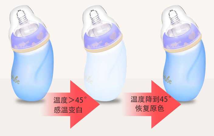 其實這種溫變粉是無毒的,而且還可以方便家長可以清楚看到奶瓶當時的溫度,本實用新型巧妙通過改進現有的可顯示溫度范圍的嬰兒奶瓶上的系列溫度顯示體的設置,提高了其有效使用。