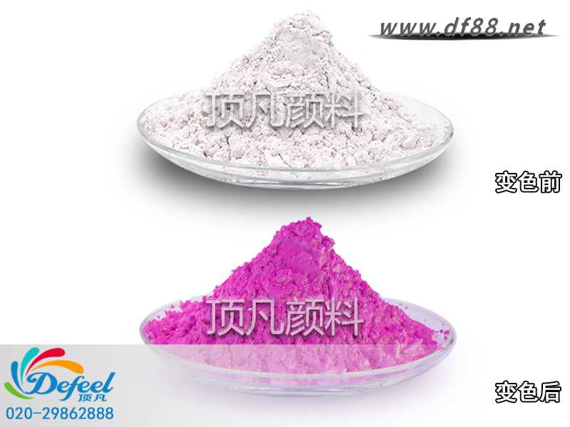 光變粉所制成的產品在無紫外光源的環境下為無色(或該產品本色),在有紫外光源的環境下為變色(或該產品本色與光變色的混合色)。頂凡光變粉的設計大多以室內(無紫外光環境)與室外(有紫外光環境)有顏色變化未需求。